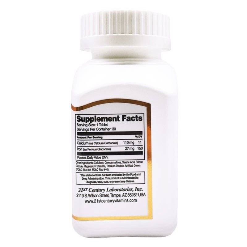21st Century 27 mg Iron Tablets For Healthy Blood Count help the production of red blood cells and specific enzymes. Iron is also an essential nutrient for everyone, especially for women in their reproductive years. If you have low levels of iron or iron deficiency (as diagnosed by your healthcare professional), supplemental iron should be considered while working with your healthcarepractitioner. Teen girls and women with heavy menstrual cycles face a higher risk of low iron levels, as do pregnant women. Also, if you don’t eat a balanced diet rich in foods containing iron or take iron-depleting medications, you might need an iron-containing supplement. Iron helps to support metabolism, growth, development, and normal cellular functioning. Iron is a key component of your haemoglobin, a protein that allows red blood cells to carry oxygen from the lungs to the rest of your body. But that’s not all iron is good for. The mineral also plays a role in energy production, growth, brain development, cellular functioning, and the synthesis of certain hormones. Without iron, your body can’t produce enough red blood cells, causing your body tissues to receive less oxygen than they need. 21st Century 27 mg Iron Tablets is a comprehensive healthy blood formula that feeds your body with the mineral that is the building block for healthy blood.