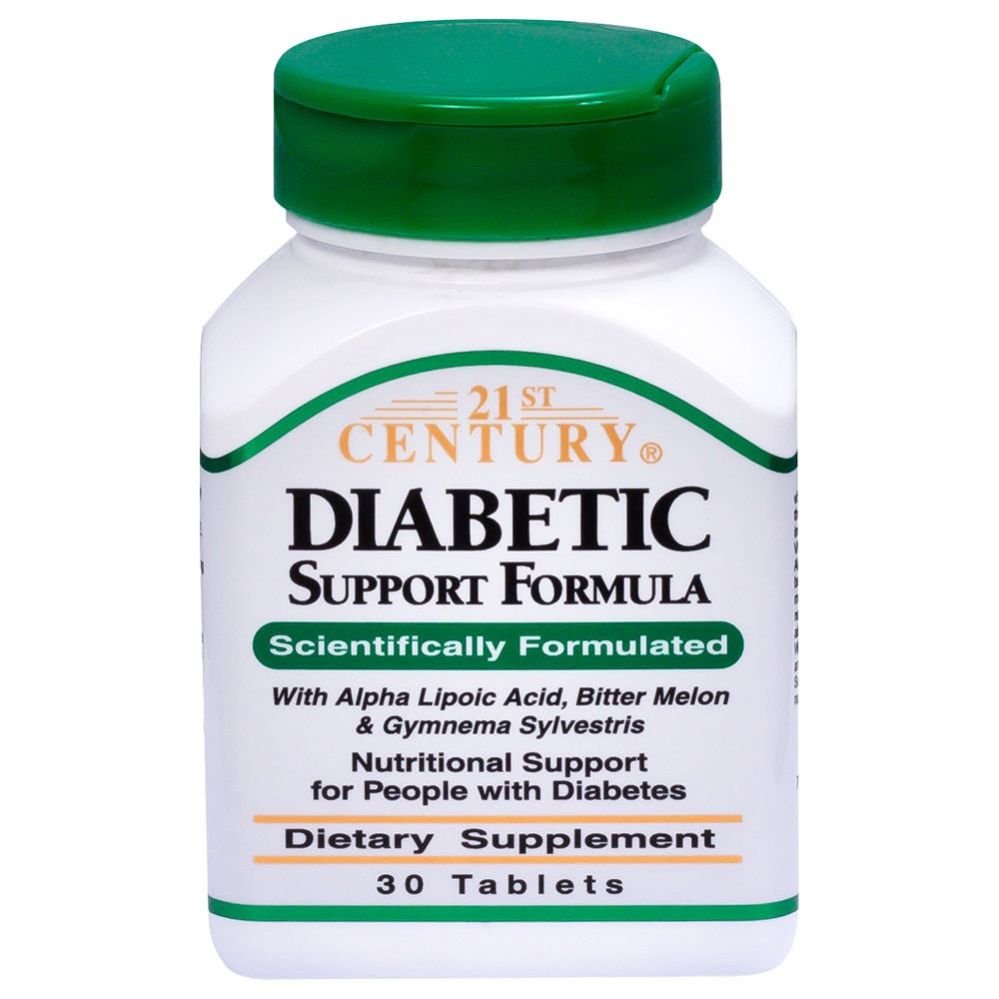 21st Century s Diabetic Support Formula provides a dynamic combination of vitamins and minerals that could be low due to the stress that diabetics can have on a body. It includes the key antioxidant nutrients, Vitamin A, Vitamin C, Vitamin E, and Selenium, as well as Alpha Lipoic Acid, which, along with its antioxidant benefits, may help maintain healthy glucose metabolism. Folic Acid is added as support for normal heart health and Chromium Picolinate to aid in the normal metabolism of protein and fat. With added herbal support from Bitter Melon and Gymnema Sylvestris, 21st Century s Diabetic Support Formula is specifically designed as nutritional support for people with diabetes.
