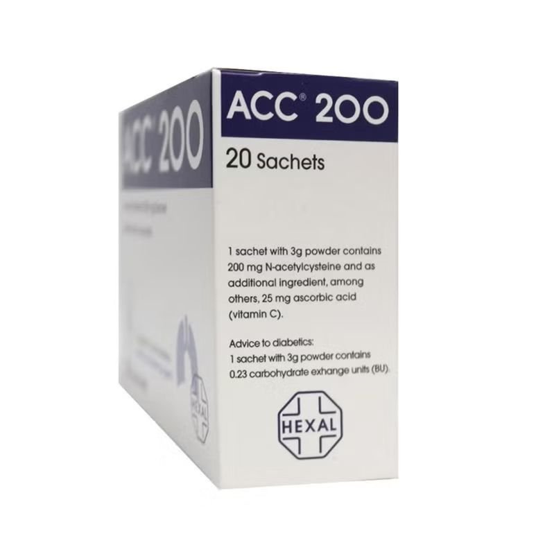 ACC 200 mg Sachet is used for the liquefaction of bronchial secretions and to facilitate expectoration in diseases of the respiratory system associated with the formation of very viscous mucus. ACC 200 is a medicine that liquefies viscous mucus in the respiratory tract. Acc 200mg Sachets may be used in children under two years under medical supervision, as there is not enough experience in this age group.