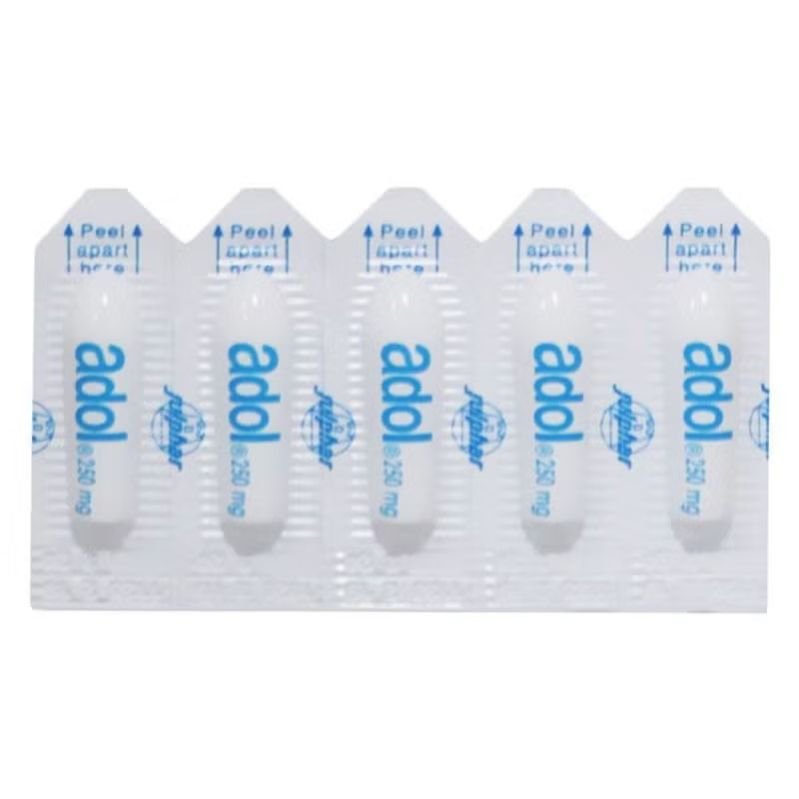 Adol Paracetamol Suppositories are pain relievers and fever reducers used to alleviate mild to moderate pain, including headaches, migraines, backaches, rheumatic aches, period pain, toothaches, dental procedures, and colds, flus, and sore throats.