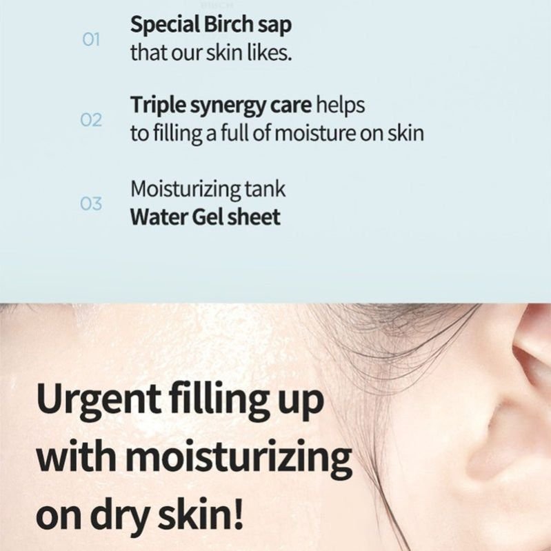 This transparent gel fabric face sheet mask, infused with birch sap, hyaluronic acid, and ceramides, provides intense skin moisture and a refreshing texture.