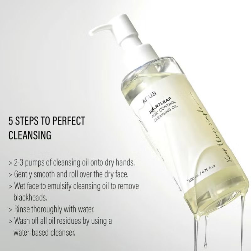 Anua Heartleaf Pore Control Cleansing Oil is a gentle facial cleanser that effectively removes dirt, makeup residue, and sebum, leaving skin refreshed and hydrated.