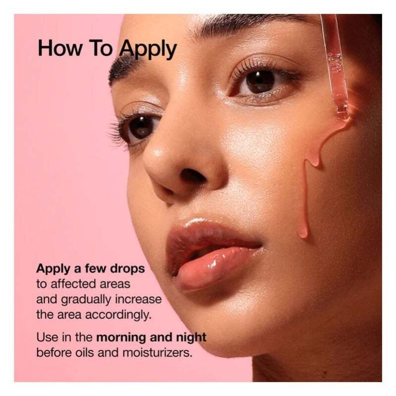 - Gently spread and pat the serum into your skin.
