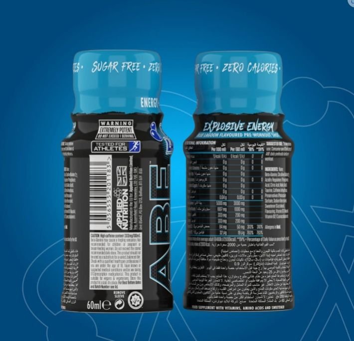 Applied Nutrition ABE Ultimate Pre-Workout Shot – Blue Lagoon Flavor (60 ml) is a compact, ready-to-drink performance enhancer designed for athletes and fitness enthusiasts seeking rapid energy, improved focus, and reduced fatigue. This liquid formula delivers a potent blend of ergogenic ingredients in a convenient single-serving shot.