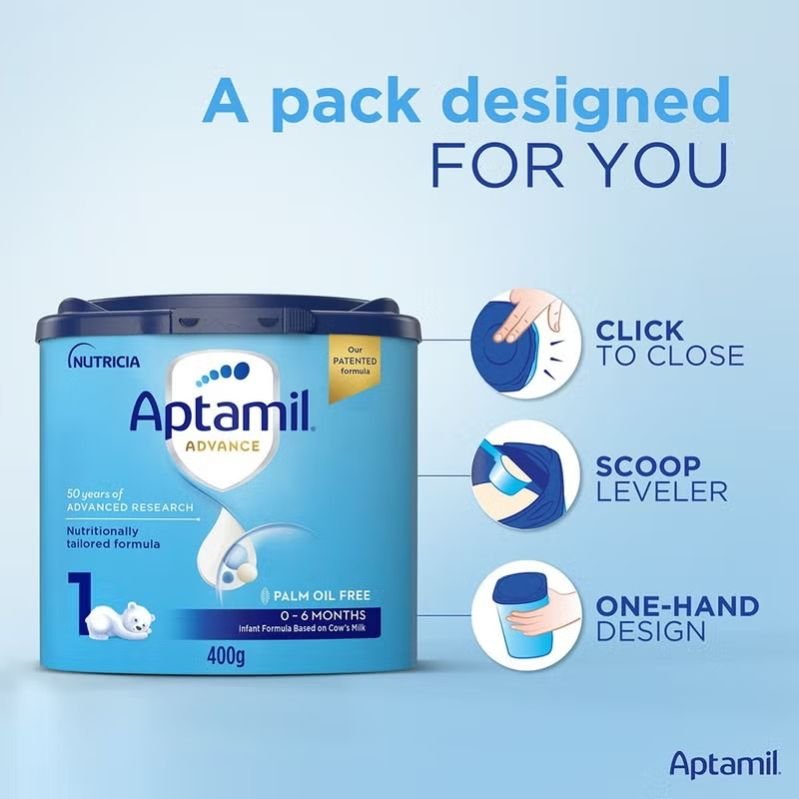 Aptamil Advance 1 Next Generation Milk Infant Formula is a patented, next-generation formula designed to support a baby s nutritional needs from birth to 6 months. It is based on 40 years of research and is the only formula with Pronutra Advance, a unique blend of ingredients including GOS/FOS, LCPs (Omega-3 (DHA) and Omega-6 (AA)), HMO 3 Galactosyllactose, and essential vitamins C and D. This formula supports a baby s overall growth and development and is suitable for healthy infants from birth who require a partial or complete breast milk substitute. For formula-fed infants, Aptamil Advance 1 helps build strong foundations for immunity, brain, and metabolism. Breastfeeding is recommended for babies, as it provides ultimate protection from illness.