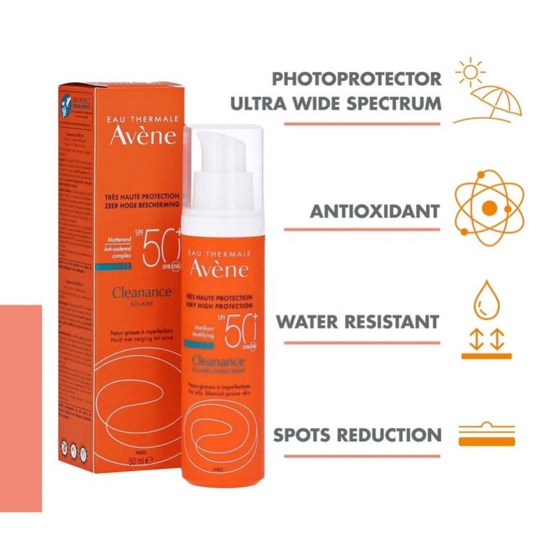 Avene Cleanance High Protection SPF 50 Cream and Avene Cleanance Sunscreen are both effective in providing sun protection for oily skin with imperfections. The cream offers a balance between UVB and UVA protection, with monolaurin, a sebum-reducing active ingredient, effectively reducing pimples and preventing sun exposure marks. It leaves an imperceptible, non-shiny finish on the skin, making it an excellent base for everyday makeup. Avene s sun-protection filters protect against sunburn and its side effects, while vitamin E acts as a powerful antioxidant. Avene Thermal Spring Water provides soothing and softening properties, ensuring the skin remains protected and nourished. Avene has over 275 years of expertise in caring for sensitive skin and is recommended by dermatologists worldwide. Avene s formulas and toxicology profiles are audited by scientists, and clinical studies are conducted under medical control to ensure the utmost respect for sensitive skin.