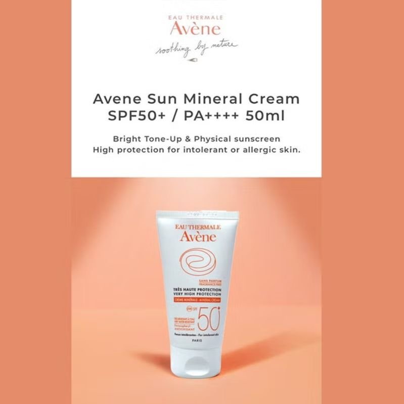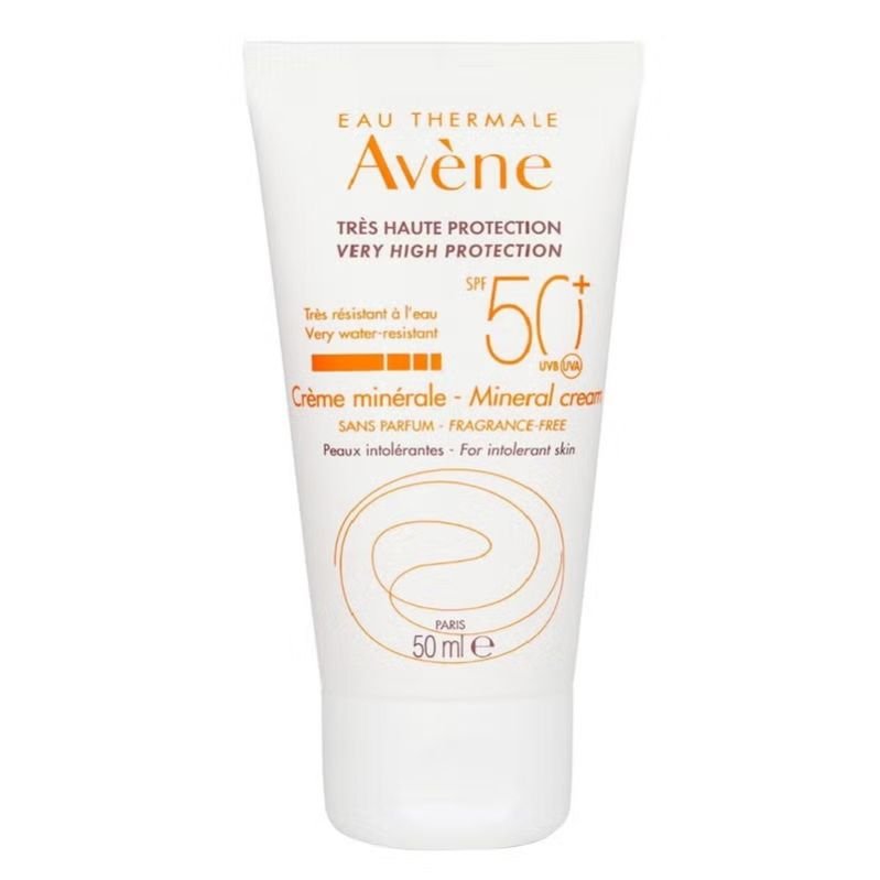 Avene SPF50+ Mineral Sunscreen offers very high sun protection for skin intolerant to chemical filters and fragrances, as well as for adult and children s delicate skin. Applied to the face, its rich, creamy formula hydrates and protects the skin. Avene Mineral Sunscreen Cream SPF 50+ is composed of a mineral filter for very broad and stable UVB-UVA protection, ensuring optimal skin tolerance. Avene Mineral Sunscreen contains titanium dioxide, and it works by forming a protective barrier on your skin, helping to reflect and scatter UVA and UVB rays. Because of its ability to reflect the sun s rays, titanium dioxide is an effective way to help protect the skin from UVA and UVB damage. Powerful antioxidant provitamin E (pre-tocopheryl) acts for cellular protection against the free radicals. Avene Thermal Spring Water brings its alleviating, soothing, and softening properties. Recommended for very fragile skin (children) or fragile skin due to intolerances, eczema, cancer treatments, etc. Avene has over 275 years of expertise in caring for sensitive skin and is recommended by dermatologists worldwide. Dedicated to sensitive skin and improving quality of life for all skin types, leveraging pharmaceutical and dermatological heritage and expertise. Avene formulas and the toxicology profile of each individual ingredient are audited by scientists. All clinical studies are conducted under medical control, ensuring the utmost respect for sensitive skin.