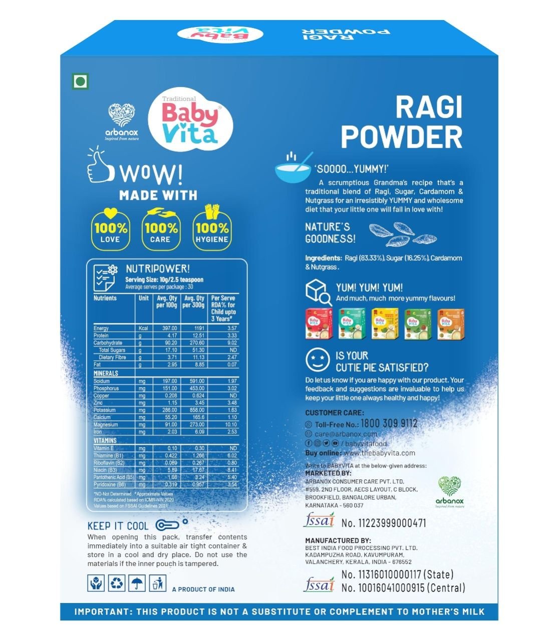 Nutritious Ragi Blend: Rich in calcium, iron, and protein for healthy growth.