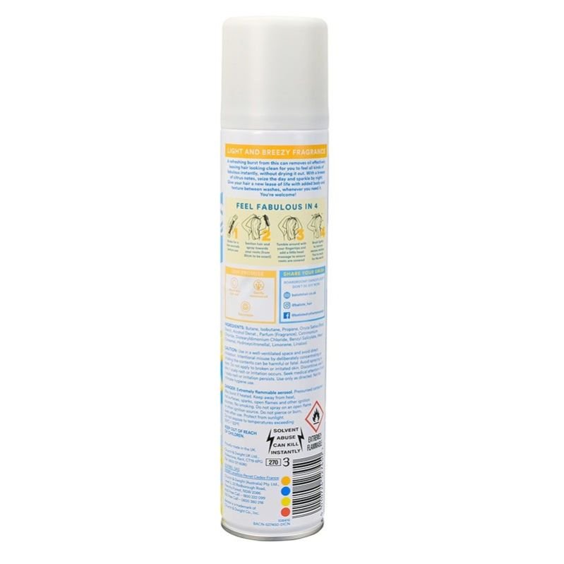 Batiste Dry Shampoo Fresh is a waterless formula that targets excess oil and grease at the roots. Get a fresh start to every day with this light and breezy scent. A few sprays will clean your hair and clear your mind, so you re ready to take on whatever the day brings. Awaken your senses and your strands with fresh lemon, bright mandarin, and orange blossom with base notes of powdery musk. An airy and revitalizing scent made for those who love that wavy-hand, windows-down feeling. Batiste Fresh locks in subtle scents with hints of pink grapefruit, orange blossom, and jasmine that never overpower. This waterless formula absorbs dirt and grease to revitalize dull and lifeless hair—now with keratin! Batiste Fresh removes oils for added texture and volume. Use between washes to instantly refresh your hair; no water is required. Batiste Dry Shampoo cleanses the oil in the roots so that hair looks clean and fresh with added body and texture. It is a perfect quick fix for great-looking and great-smelling hair in between washes.