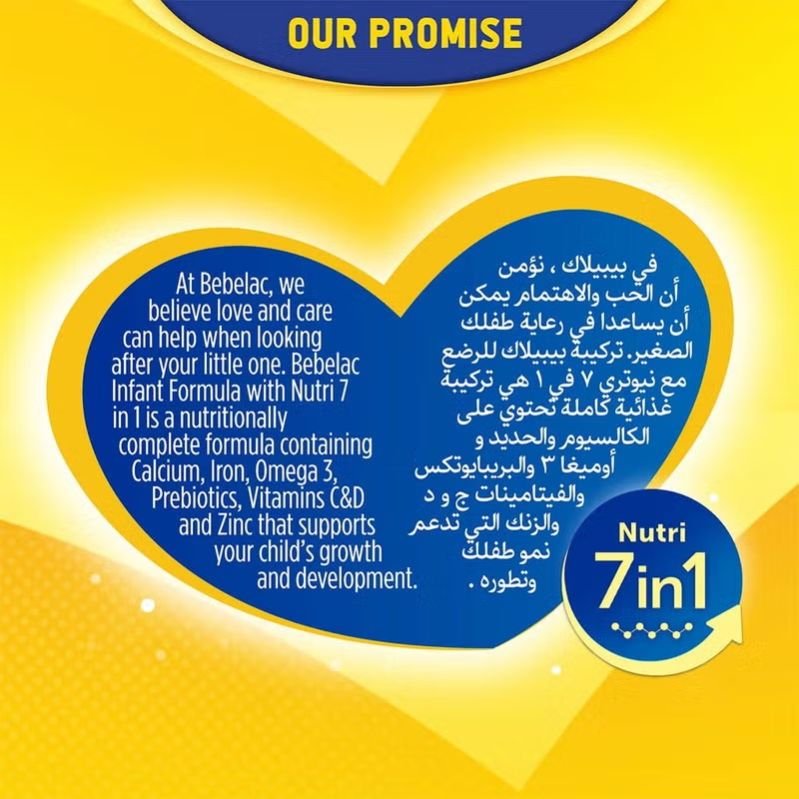 Bebelac Nutri 7 In 1 Stage 1 Infant Milk Formula For 0-6 Months Baby is a nutritionally complete formula that includes calcium, iron, omega 3, prebiotics, vitamin C, vitamin D, and zinc. It is gentle on the tummy and supports your child s growth and development needs. If you cannot breastfeed, Bebelac Nutri 7-in-1 offers precise nutrition tailored for each development stage. This formula is designed as a complete substitute for human milk, meeting the full nutritional needs of babies. It is suitable as the sole source of nutrition from birth to 6 months and as part of a starter diet.