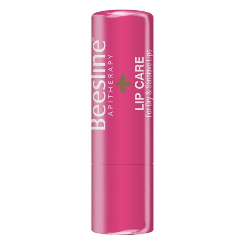 BeeslineĀ® Apitherapy Lip Care Stick Shimmery Strawberry soothes, moisturizes, and regenerates dry lips using beeswax and precious oils, providing antioxidant and rejuvenating benefits.