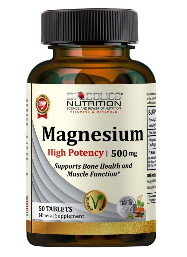 Biobolics Magnesium High Potency 500mg (50s) is a daily supplement providing essential magnesium support for muscles, bones, and overall body function, contributing to energy production, relaxation, and sleep quality.