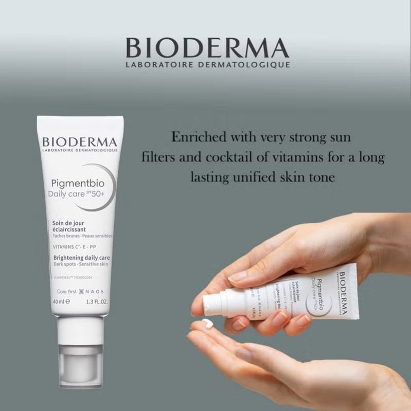 - Apply Bioderma Pigmentbio SPF50+ Dark Spot Brightening Daily Care Cream For Sensitive Skin every morning to face and neck after cleansing. For best results, apply after cleaning the face with Bioderma Pigmentbio H2O or Bioderma Pigmentbio Foaming cream.