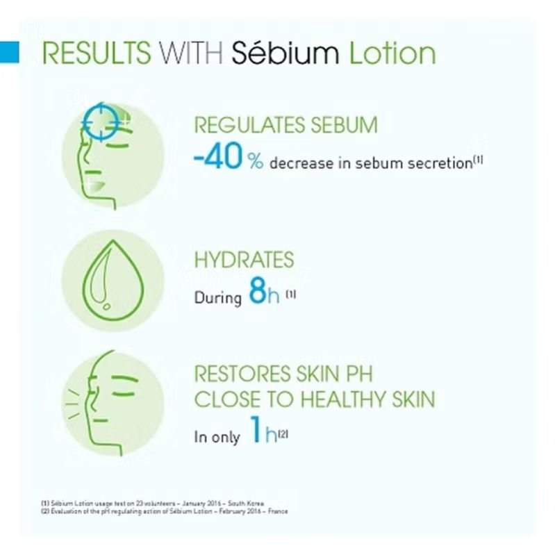 Bioderma Sebium Lotion durably rebalances sensitive combination or oily skin. Triple action: 8-hour hydration, regulation of sebum and skin s pH. It tightens pores. Non-comedogenic.