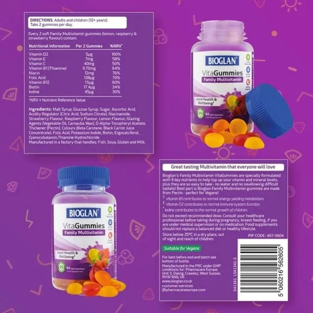 Bioglan's Family Multivitamin VitaGummies are a nutritious, vegetarian option with 9 key nutrients, a delicious taste, and easy-to-take, convenient chewable gummies.