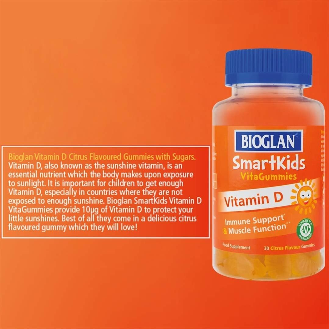 Bioglan, also known as the sunshine vitamin, is an essential nutrient that the body makes upon exposure to sunlight. It is important for children to get enough vitamin D, especially in countries where they are not exposed to enough sunshine. Bioglan Smart Kids Vitamin D VitaGummies provide 10 μg of vitamin D to protect your little sunshines. Best of all, they come in a delicious citrus-flavoured gummy.