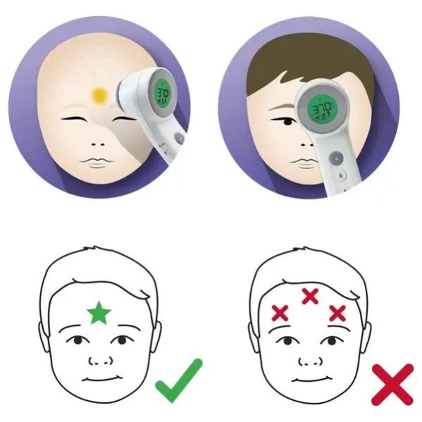 This thermometer uses patented breakthrough technology to make taking temperature easy, stress-free and incredibly accurate. in touch mode, place the thermometer on the forehead between the eyebrows to take a measurement. in no touch mode, hold the thermometer in front of your child s forehead between the eyebrows up to 2 cm away, therefore reducing stress for your child. the temperature can then be taken without risk of waking them.