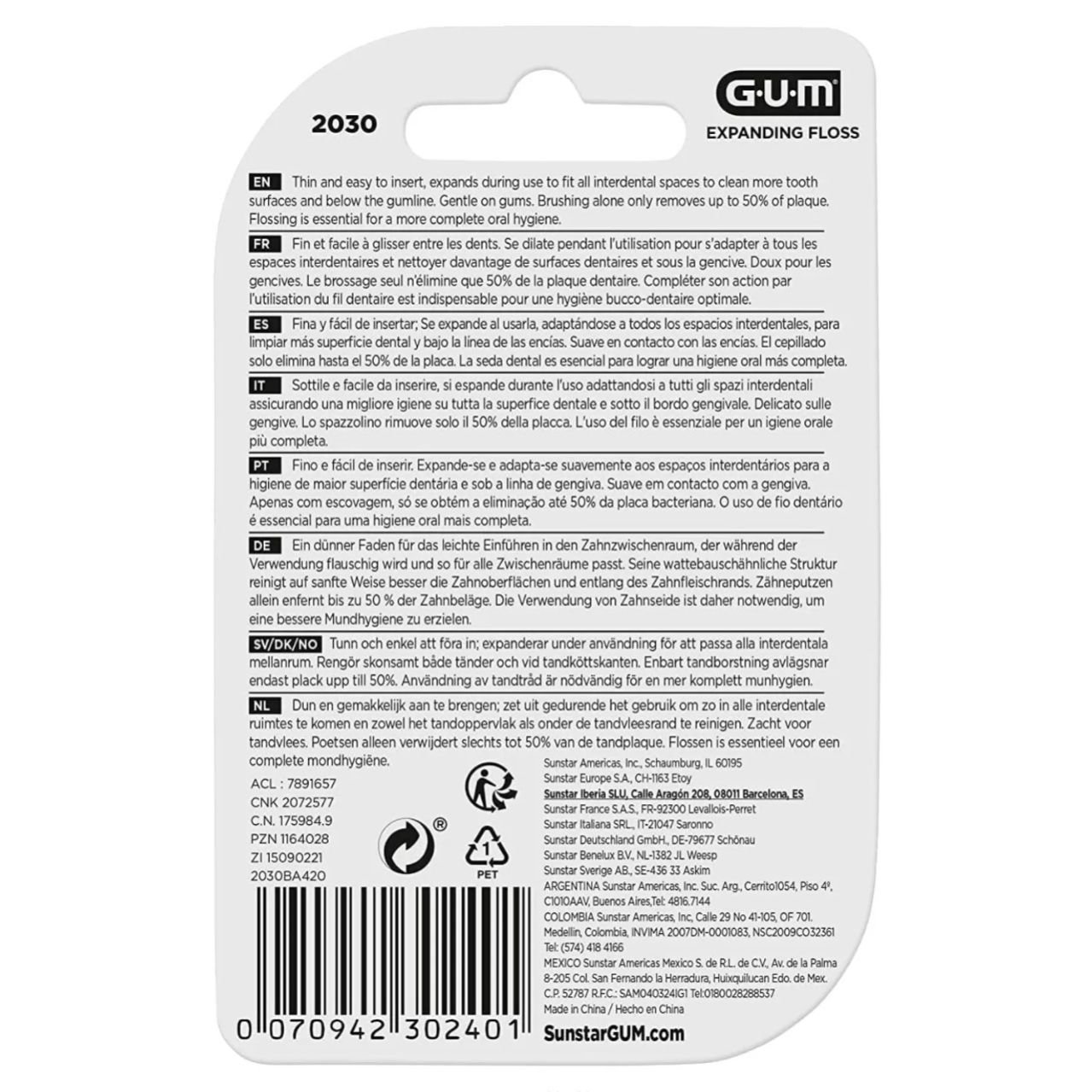Butler Gum Expanding Floss Waxed is thin and easy to insert, expands during use to fit all interdental spaces to clean more tooth surfaces and below the gum line.