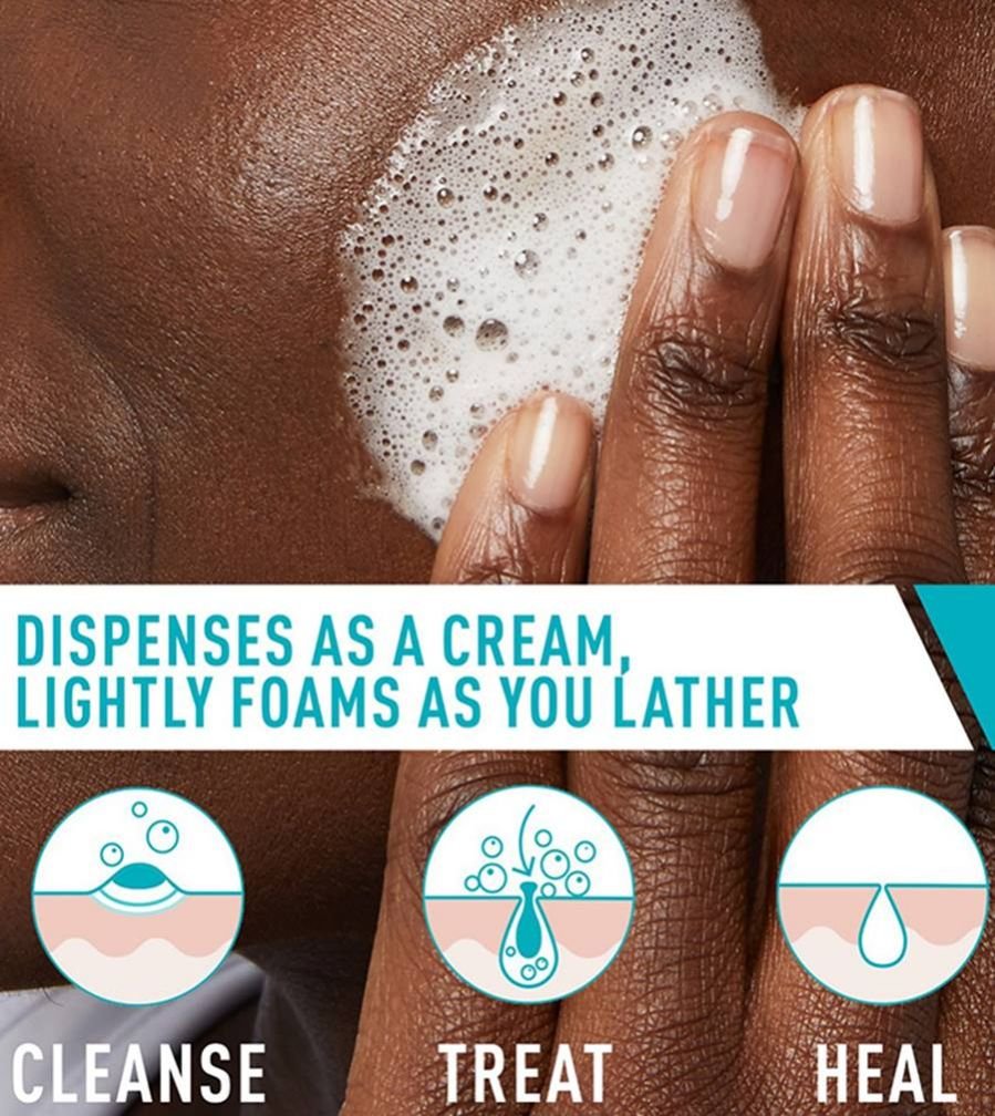 CeraVe is the #1 dermatologist-recommended cleanser brand for acne*, and our first acne-treatment product with 4% benzoyl peroxide is backed by well-established skincare knowledge and expertise. The new CeraVe Acne Foaming Cream Cleanser is formulated to thoroughly dissolve dirt and excess oil while clearing acne with 4% benzoyl peroxide. Our formula also features hyaluronic acid to help retain your skin’s natural moisture and niacinamide to provide you with soothing benefits while allowing your skin to heal.