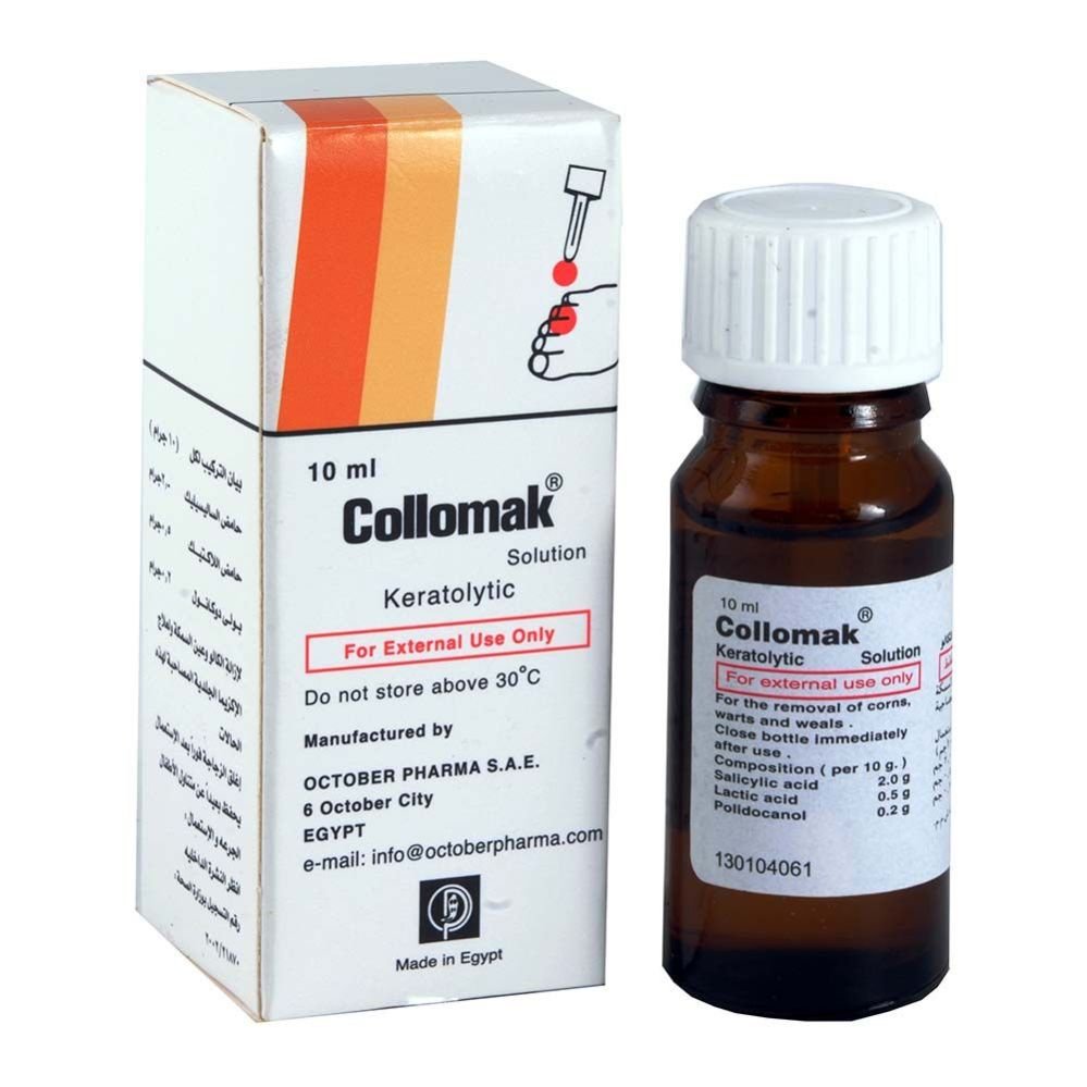 Collomak Solution 10 ml is a dermatological treatment specially formulated to soften and remove corns, calluses, and warts. With its keratolytic properties, it helps break down hardened skin layers, making removal easier and more effective. The solution is easy to apply topically and offers targeted relief for localized skin conditions, supporting smoother and healthier skin recovery.