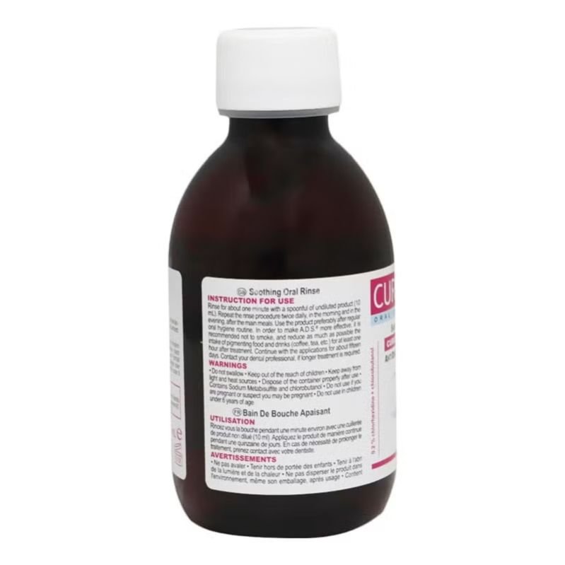 Curasept ADS Soothing Mouthwash offers rapid anti-plaque action and relief of irritative symptoms, with an alcohol-free formula and the A.D.S.® system reducing tooth pigmentation.