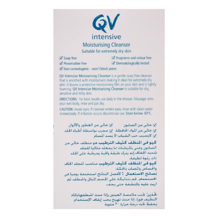 How to use: for best results, use daily in the shower. Massage onto your wet body, rinse and pat dry. Use in conjunction with QV Intensive Body Moisturiser after showering.