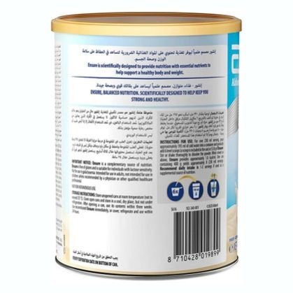 Ensure Complete Vanilla Powder is a complementary source of nutrition. It is free of gluten and suitable for individuals with lactose sensitivity. It is intended for use in adults, not intended for use in children unless recommended by a physician or other qualified healthcare professional. Ensure is scientifically designed to provide nutrition with essential nutrients to help support a healthy body and weight.