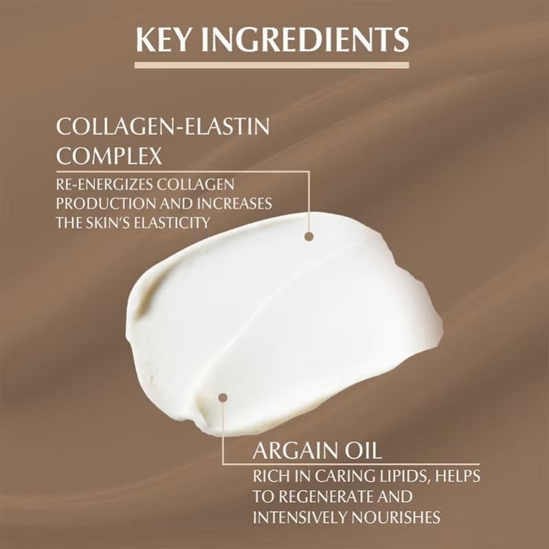 This night cream effectively smooths wrinkles, improves skin elasticity, and is suitable for all skin types, with a rich texture, is non-comedogenic, is lightly fragranced, and is dermatologically tested.