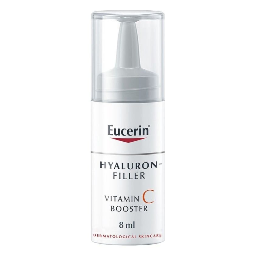 Eucerin Hyaluron-Filler Vitamin C Anti-Ageing Booster Serum contains 10% pure vitamin C, which is an effective antioxidant and helps the skin s appearance. Also, it has low molecular Hyaluronic acid that penetrates the epidermal skin layers where wrinkles originated. The sun, pollution, smoking, and other aspects of our lifestyles trigger the formation of free radicals. Free radicals cause oxidative stress to skin, accelerate premature skin ageing, and leave skin looking dull. Eucerin Hyaluron-Filler Vitamin C Booster with 10% pure and freshly activated Vitamin C has been specially formulated to fight free radicals and address the first signs of ageing: it strengthens skin, plumps up wrinkles, and gives you a smoother, fresher, and more radiant look. Innovative packaging ensures that the pure Vitamin C is freshly activated on first use. Simply press and shake to combine the Vitamin C powder into a serum of low molecular Hyaluronic Acid, and Licochalcone A. The formula is at its most effective for 21 days. Low molecular Hyaluronic Acid is an effective moisturiser that plumps up wrinkles in the epidermal (outermost) layers of skin. Another proven antioxidant, Licochalcone A, works alongside Vitamin C to neutralise the free radicals caused by UV and high-energy visible (HEVIS) light. Eucerin Hyaluron-Filler Vitamin C Booster is suitable for all skin types and is clinically and dermatologically proven to strengthen skin and plump up wrinkles. Skin becomes smoother, fresher, and more radiant in just seven days, and results improve over time.