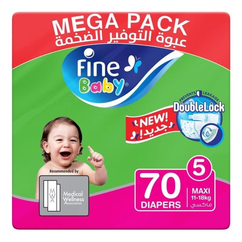 Fine Baby Double Lock Maxi Diapers Size 5 11-18 Kg 70s