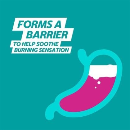 - Forms a ‘raft’ over the stomach contents, which helps prevent acid from coming back up into the esophagus (food pipe).