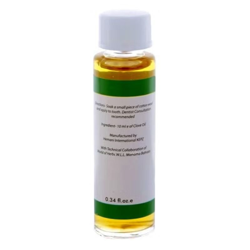 Hemani Clove Oil helps in relief of gingivitis and toothaches. Clove oil is useful for scabies, fungal infections and other types of injuries. Clove is rich in minerals such as calcium, hydrochloric acid, sodium, potassium and vitamin A and vitamin C.