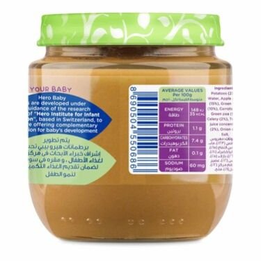 Hero Baby Mixed Vegetables Spread is a nutritious and smooth-textured baby food designed for infants aged 6 months and above. This ready-to-eat puree is made from a blend of high-quality vegetables to provide essential vitamins, minerals, and fiber for your baby’s early development. With no added preservatives, artificial colors, or flavors, it supports a balanced weaning diet in a safe and convenient format. It is an ideal choice for parents introducing solid foods, helping promote healthy digestion and taste development in little ones.