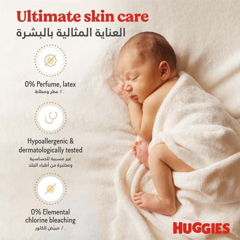 Huggies Extra Care Newborn Diapers in size 2 are the ultimate choice for your little one s delicate skin. These premium Huggies diapers are specially designed for babies weighing 4 to 6 kg. They are gentle enough to be used the day after birth. Dermatologist-approved and crafted with gentle skin care in mind, these diapers offer exceptional comfort and protection for your newborn. The unique soft pillows in these nappies are designed to absorb liquids in seconds. They keep your baby dry and ensure comfort at all times. No more wetness against the skin, just softness and protection at every touch. Forget about messy accidents with these diapers that feature a special waistband pocket. It effectively prevents leakage and protects your baby, ensuring they stay dry and comfortable, day and night. With the innovative wetness indicator, you can easily tell when it s time for a diaper change. The indicator changes color when wet, providing a signal that helps you keep your baby s skin fresh and clean. Huggies Extra Care Newborn disposable diapers are easy to pack and are portable. They make an essential addition to your baby s diaper bag or baby care kit. Huggies understands the importance of allowing your baby s skin to breathe. That s why Huggies nappies are made with a porous material that promotes airflow. They reduce the risk of irritation and keep your little one s skin healthy and happy. At Huggies, since 1968, they have believed in keeping your baby s skin clean, healthy, and soft. Their pathbreaking innovations in infant care have helped generations of toddlers stay clean and healthy. With the Huggies Extra Care Newborn Diapers, you can rest assured knowing you ve chosen the best for your precious bundle of joy. Huggies is always there for every stage of your baby’s development. It is the perfect choice for your child when it comes to protection you can trust. Discover a full range of Huggies baby items, such as wet wipes, diapers in all sizes, and swim nappies for little swimmers.
