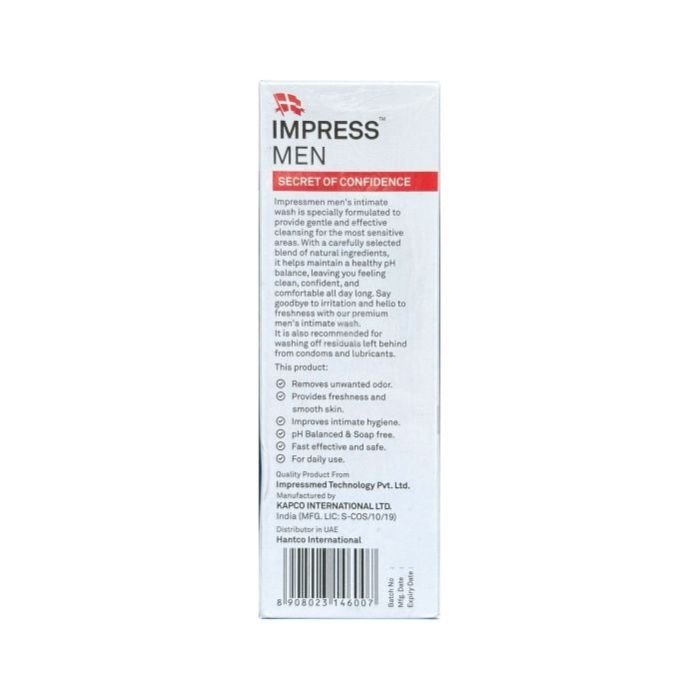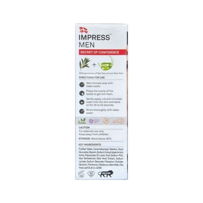 IMPRESSMEN men s intimate wash is specially formulated to provide gentle and effective cleansing for the most sensitive areas, with a carefully selected blend of natural ingredients. It helps maintain a healthy PH balance, leaving you feeling clean, confident and comfortable all day long. Say goodbye to irritation and hello to freshness with our premium men s intimate wash.