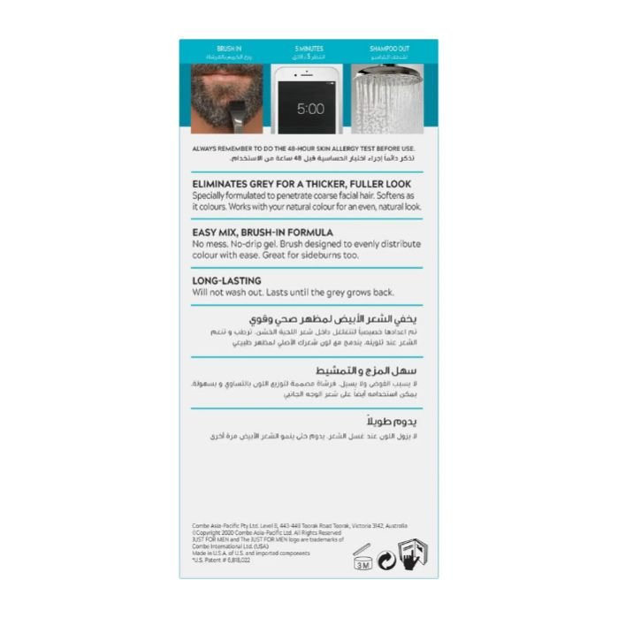 New look, same great results! Just For Men Mustache & Beard is beard coloring that makes getting rid of gray facial hair easy. Unlike other dyes, this beard color is formulated specifically for coarser facial hair. Eliminates gray for a thicker and fuller look. This men’s beard coloring product is easy to use. Simply mix the color base and developer, use the brush to apply the mixture, wait five minutes, rinse the product out, shampoo your beard, and you re done.