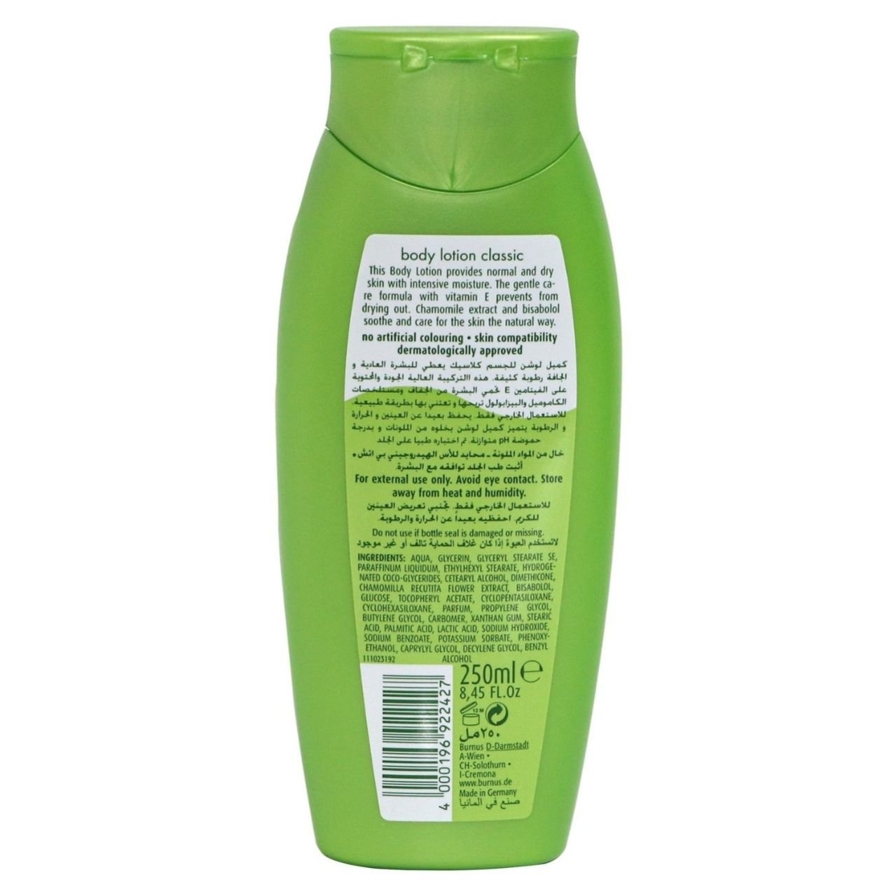 Kamill Body Lotion Classic for sensitive skin is a naturally pleasant body lotion. The lotion donates optimal moisture care for the skin. Chamomile extract and bisabol nourish the skin with a protective film and can maintain a good moisture balance. The gentle care formula with vitamin E prevents skin from drying out. Chamomile extract and bisabol soothe and care for the skin naturally.