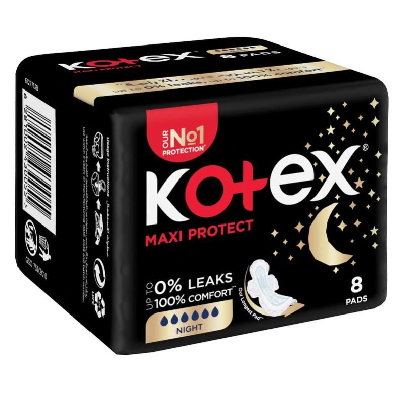 Kotex Maxi Protect Thick Pads With Wings For Overnight Protection 8s