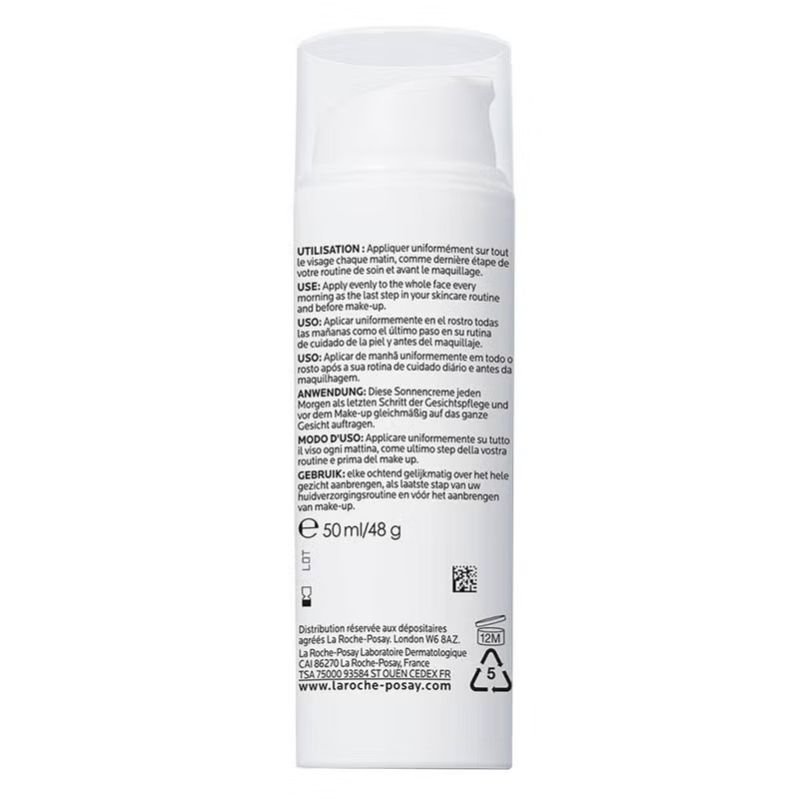 La Roche-Posay Anthelios Age Correct SPF 50 Anti-Aging Invisible Sunscreen With Niacinamide is a new generation of anti-aging daily protection that protects and corrects signs of aging in 4 weeks. With Broad Spectrum Protection and dermatological corrective actives powered by Hyaluronic Acid, Niacinamide and Phe-Resorcinol, this tinted facial sunscreen protects the skin from the sun and pollution, all the while minimizing the appearance of wrinkles and dark spots. Powered by new CELLOX-B3 TECH™ with Mexoryl XL La Roche-Posay Anthelios Age Correct SPF50 Cream is designed to limit skin damage induced by UVB/UVA, IR-A & pollution. Anti-aging efficacy with dermatological corrective actives incorporated in the formula includes Fragmented Hyaluronic Acid + Phe-Resorcinol + Niacinamide. Fragmented hyaluronic acid exerts a deeper effect than normal hyaluronic acid to reduce wrinkles. Phe resorcinol is 1000x more efficient than vitamin C at reducing dark spots. Niacinamide strengthens skin barrier function and also acts as a soothing agent. Anthelios Age Correct cream is a product that, besides protecting your skin, also corrects all this existing damage with clinically proven results and a texture that assures no trade-offs in sensoriality.