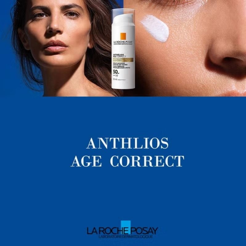 - Apply the La Roche-Posay Anthelios Age Correct SPF 50 Sunscreen just before exposure. Reapply frequently and generously to maintain protection, especially after perspiring or toweling. External use.