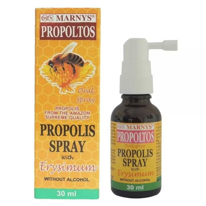 Marnys Propoltos spray is a new and practical alcohol-free mouth spray, specially formulated to care for the throat, made up of propolis concentrate and erysimum (also known as wallflower) in order to set up a protection barrier against possible infections and soothe the throat.