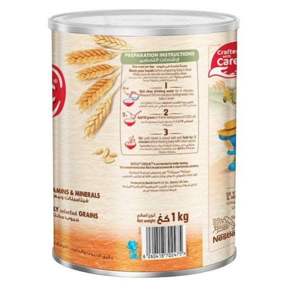 NESTLE CERELAC Infant Cereals with iRON+ WHEAT & FRUITS 1 kg tin, a delicious and nutritious wheat-based cereal with milk powder for your baby from 6 months. Fortified with iRON+, which helps to support healthy brain and cognitive development. Contains BL and immunonutrients (A, C, D and zinc) to support your baby’s immune system. Made from 100% natural grain and easily digestible. A convenient and nutritious way to slowly introduce new tastes. When your baby is this age, they’re ready to try food for the first time, which is why we’ve developed a baby food cereal just for their little tummies. Slowly making it a part of their diet will encourage them to enjoy new experiences with food.