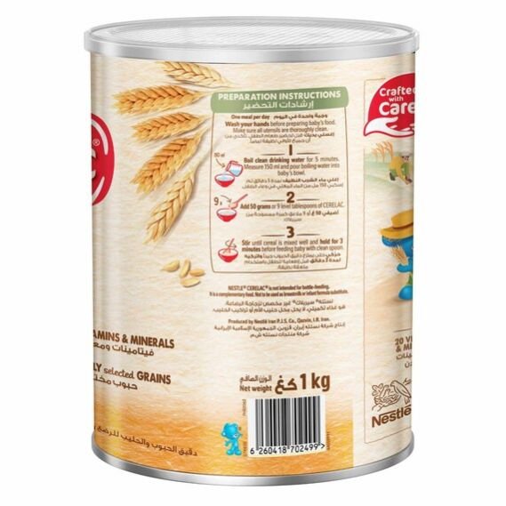 This nutritious wheat and honey blend is ideal for infants aged 6 months and above, rich in vitamins and minerals, easy to prepare, and comes in convenient 1 kg packaging.