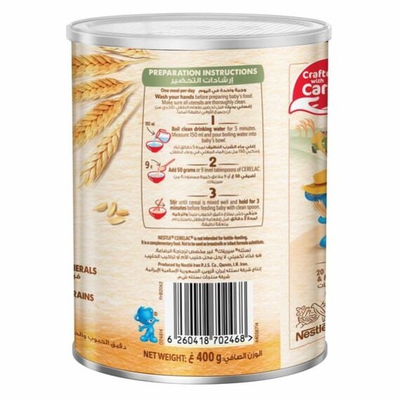 This product, made with high-quality wheat and natural honey, is a delicious, easy-to-digest, and convenient 400 g package for infants starting their weaning journey and mixes easily with water or milk.
