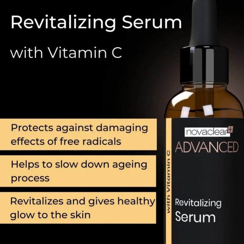 Novaclear Advanced Revitalizing Serum With Vitamin C contains 7.5 % Vitamin C—a strong antioxidant. The stable form of the active improves skin condition, brightens and reduces signs of aging. In concentrated, active form, it is a powerful antioxidant, protects against free radical damage, evens skin tone, and promotes collagen production. This serum helps to improve skin condition, reduce wrinkles, and nourish and revitalize dull skin. It is highly suitable for uneven-looking, dull skin with visible first signs of aging. Novaclear is a polish brand of dermocosmetics. The products are developed in a specialized laboratory and produced in a modern factory in Białystok. The brand focuses on making the dermocosmetics skin-friendly and effective. Novaclear uses patented active ingredients whose effectiveness has been confirmed by clinical tests. In their formulas, they avoid substances that may be potential allergens or sensitizing substances. The Novaclear brand has become a formal member of the Polish Society of Atopic Diseases. All Novaclear cosmetics are dermatologically tested, and their operation has been confirmed by in vitro tests on a specific number of people.