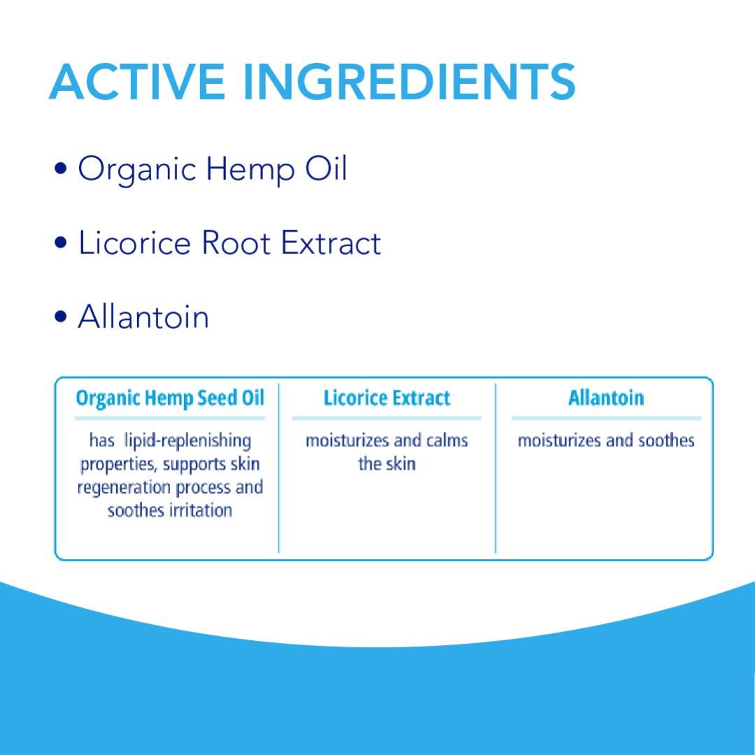 Organic Hemp Oil: The addition of Organic Hemp Oil aids in rebuilding the natural hydrolipid barrier of the epidermis, strengthening the skin s ability to regenerate and defend against external stressors.