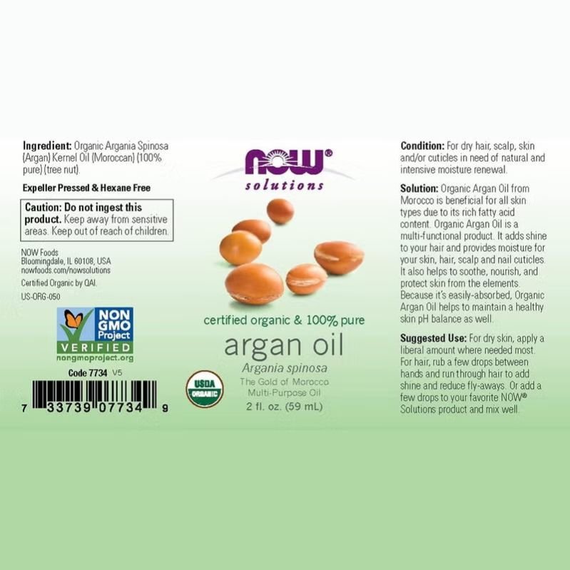 Now Solutions 100% Pure Organic Argan Oil For Dry Skin, Scalp & Hair is formulated with 100% Organic Argan Oil from Morocco. Now 100% Pure Organic Argan Oil is beneficial for all skin types due to its rich fatty acid content. Organic Argan Oil is a multi-functional product. It adds shine to your hair and provides moisture for your skin, hair, scalp, and nail cuticles. It also helps to soothe, nourish, and protect skin from the elements. Now 100% Pure Organic Argan Oil deeply nourishes and hydrates the skin, leaving it soft, supple, and radiant. Because it s easily absorbed, Organic Argan Oil helps to maintain a healthy skin pH balance as well. Argan oil has been used for centuries by indigenous women in Morocco, with one of its key usages being to keep the skin hydrated and protected against the dry weather. This is also the reason Argan Oil is used to improve scalp health. Argan oil has many useful components that aim to fix the issue of scalp dryness, allowing it to breathe. It also gives you a refreshing sensation and keeps your scalp clean and moisturised. Rich in nourishing nutrients, including vitamin E, fatty acids, squalene, and antioxidants, argan oil can protect, soothe, and treat a whole host of skin conditions. Argan oil can protect you against free radicals and other external factors. Argan oil also supports the regenerative capacity of the skin.