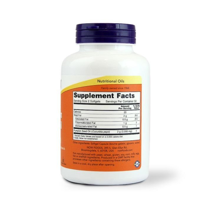Now Pumpkin Seed Oil is a nutritional oil derived from cold-pressed, non-GMO pumpkin seeds (Cucurbita pepo), offering a rich source of essential fatty acids (EFAs) and phytosterols. Traditionally used to support prostate health, this oil also promotes urinary tract function, skin and hair vitality, and cardiovascular wellness. Each serving delivers 2,000 mg of pure pumpkin seed oil in easy-to-swallow softgels.