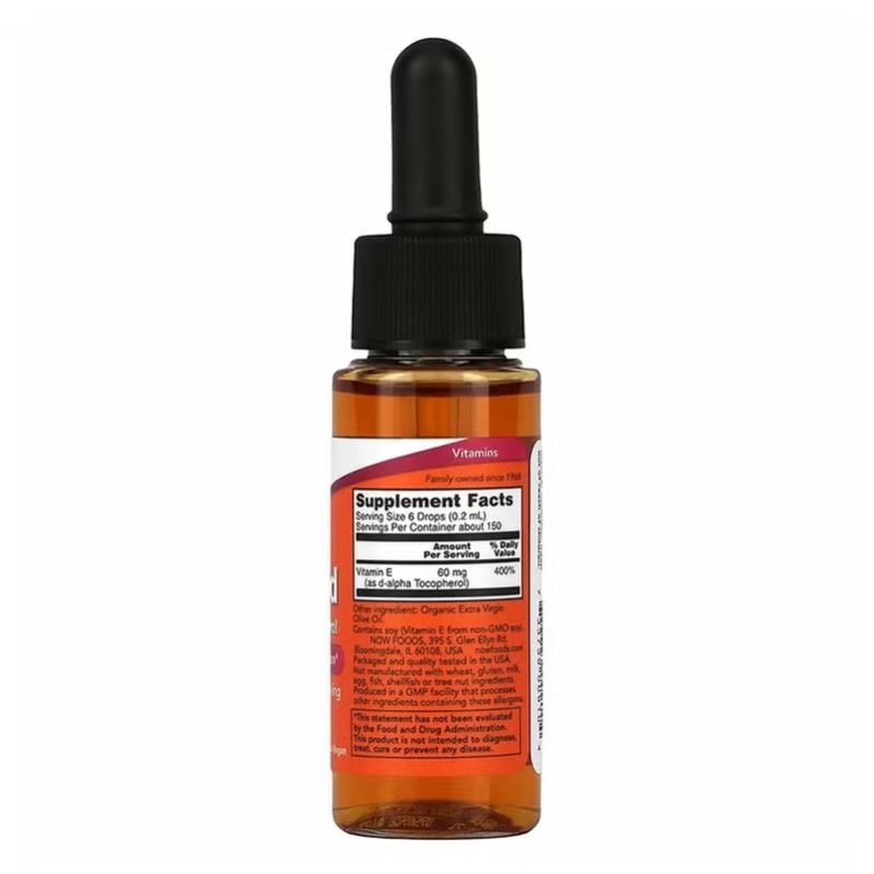 Now Vitamin E Liquid Drops Plant Derived For Antioxidant Support 30ml