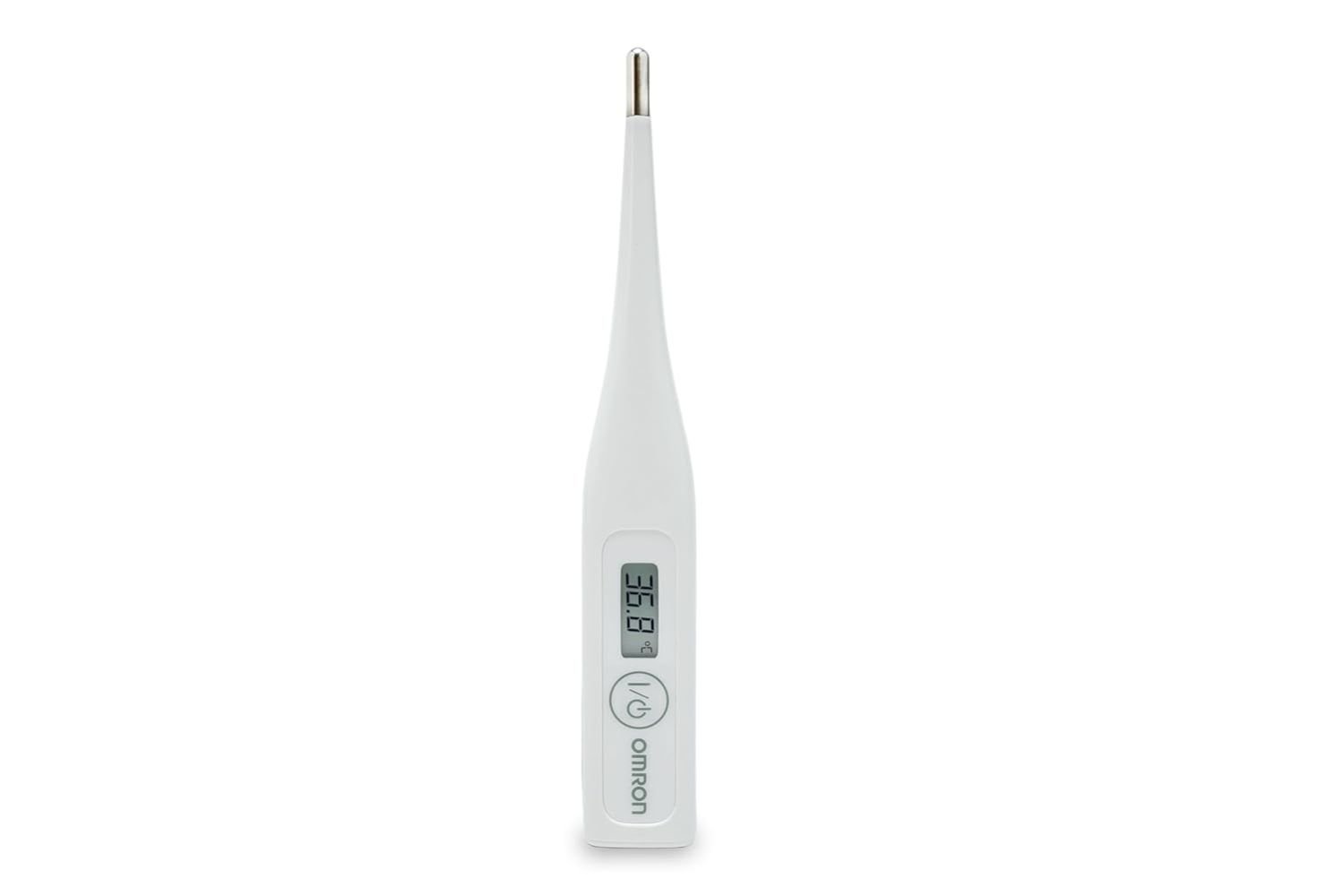 The Omron Eco Temp Basic digital thermometer is a compact, 60-second device suitable for oral, axillary, or rectal use, with a beeper for battery life.